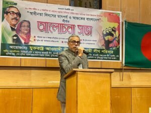 মহান স্বধীনতার ৫৫তম বার্ষিকী উদযাপন করেছে যুক্তরাষ্ট্র আওয়ামী লীগ, আওয়ামী পরিবার,সকল সহযোগী অঙ্গ সংগঠন এবং মুক্তিযুদ্ধের পক্ষের বিভিন্ন রাজনৈতিক, সামাজিক, সাংস্কৃতিক, পেশাজীবী,কবি, সাংবাদিক, কলামিস্ট, গবেষকসহ অন্যান্য সংগঠনের উদ্যোগে গত রবিবার,২২ মার্চ ২০২৬,বিকাল সাড় ৬টায় নিউইয়র্কের বাঙালি অধ্যুষিত জ‍্যকসন হাইটসের জুইস সেন্টারে।যুক্তরাষ্ট্র আওয়ামী লীগের অন্যতম উপদেষ্টা,বাকসু’র সাবেক জিএস ও বীর মুক্তিযোদ্ধা ড. যুক্তরাষ্ট্র আওয়ামী লীগের অন্যতম উপদেষ্টা ড.প্রদীপ রজ্ঞন করের সভাপতিত্বে ,দফতর সম্পাদক প্রকৌশলী মোহাম্মদ আলী সিদ্দিকী ও আইন বিষয়ক সম্পাদক এডভোকেট শাহ মোহাম্মদ বখতির আলীর যৌথ সঞ্চালনায় অনুষ্ঠিত “স্বাধীনতা দিবসের তাৎপর্য ও আজকের বাংলাদেশ “শীর্ষক আলোচনা সভায় সম্মানিত অতিথিবৃন্দ মাঝে বক্তব্য রাখেন যুক্তরাষ্ট্র আওয়ামী লীগের অন্যতম উপদেষ্টা ও সিনিয়র সাংবাদিক হাকিকুল ইসলাম খোকন,বীর মুক্তিযোদ্ধা গোলাম মোস্তফা খান মিরাজ,বীর মুক্তিযোদ্ধা শওকত আকবর রিচি,বীর মুক্তিযোদ্ধা ফারুক হোসাইন,বীর মুক্তিযোদ্ধা খুরশিদ আনোয়ার বাবলু, বীর মুক্তিযোদ্ধা ইসমাইল খান আনসারী,মুক্তিযোদ্ধা হেলাল মজিদ,বীর মুক্তিযোদ্ধা ও কবি অবিনাশ আচার্য্য,মুক্তিযোদ্ধা শহীদ পরিবারের সন্তান ও যুক্তরাষ্ট্র আওয়ামী লীগ,আওয়ামী পরিবার ও মুক্তিযুদ্ধের পক্ষের সংগঠন সমুহের ৫৫তম স্বাধীনতা দিবস উদযাপন হাকিকুল ইসলাম খোকন, বাপসনিউজঃ মহান স্বধীনতার ৫৫তম বার্ষিকী উদযাপন করেছে যুক্তরাষ্ট্র আওয়ামী লীগ, আওয়ামী পরিবার,সকল সহযোগী অঙ্গ সংগঠন এবং মুক্তিযুদ্ধের পক্ষের বিভিন্ন রাজনৈতিক, সামাজিক, সাংস্কৃতিক, পেশাজীবী,কবি, সাংবাদিক, কলামিস্ট, গবেষকসহ অন্যান্য সংগঠনের উদ্যোগে গত রবিবার,২২ মার্চ ২০২৬,বিকাল সাড় ৬টায় নিউইয়র্কের বাঙালি অধ্যুষিত জ‍্যকসন হাইটসের জুইস সেন্টারে।যুক্তরাষ্ট্র আওয়ামী লীগের অন্যতম উপদেষ্টা,বাকসু’র সাবেক জিএস ও বীর মুক্তিযোদ্ধা ড. যুক্তরাষ্ট্র আওয়ামী লীগের অন্যতম উপদেষ্টা ড.প্রদীপ রজ্ঞন করের সভাপতিত্বে ,দফতর সম্পাদক প্রকৌশলী মোহাম্মদ আলী সিদ্দিকী ও আইন বিষয়ক সম্পাদক এডভোকেট শাহ মোহাম্মদ বখতির আলীর যৌথ সঞ্চালনায় অনুষ্ঠিত “স্বাধীনতা দিবসের তাৎপর্য ও আজকের বাংলাদেশ “শীর্ষক আলোচনা সভায় সম্মানিত অতিথিবৃন্দ মাঝে বক্তব্য রাখেন যুক্তরাষ্ট্র আওয়ামী লীগের অন্যতম উপদেষ্টা ও সিনিয়র সাংবাদিক হাকিকুল ইসলাম খোকন,বীর মুক্তিযোদ্ধা গোলাম মোস্তফা খান মিরাজ,বীর মুক্তিযোদ্ধা শওকত আকবর রিচি,বীর মুক্তিযোদ্ধা ফারুক হোসাইন,বীর মুক্তিযোদ্ধা খুরশিদ আনোয়ার বাবলু, বীর মুক্তিযোদ্ধা ইসমাইল খান আনসারী,মুক্তিযোদ্ধা হেলাল মজিদ,বীর মুক্
